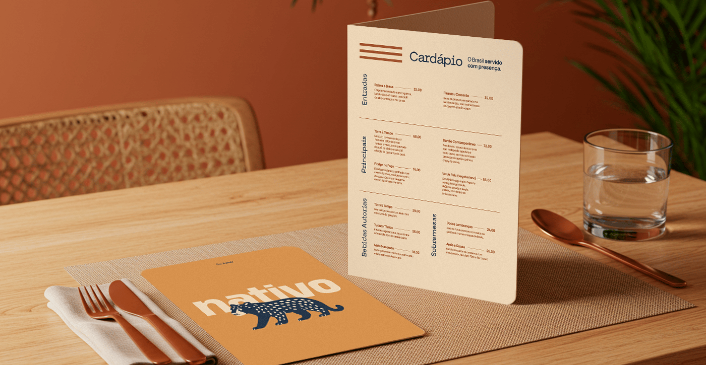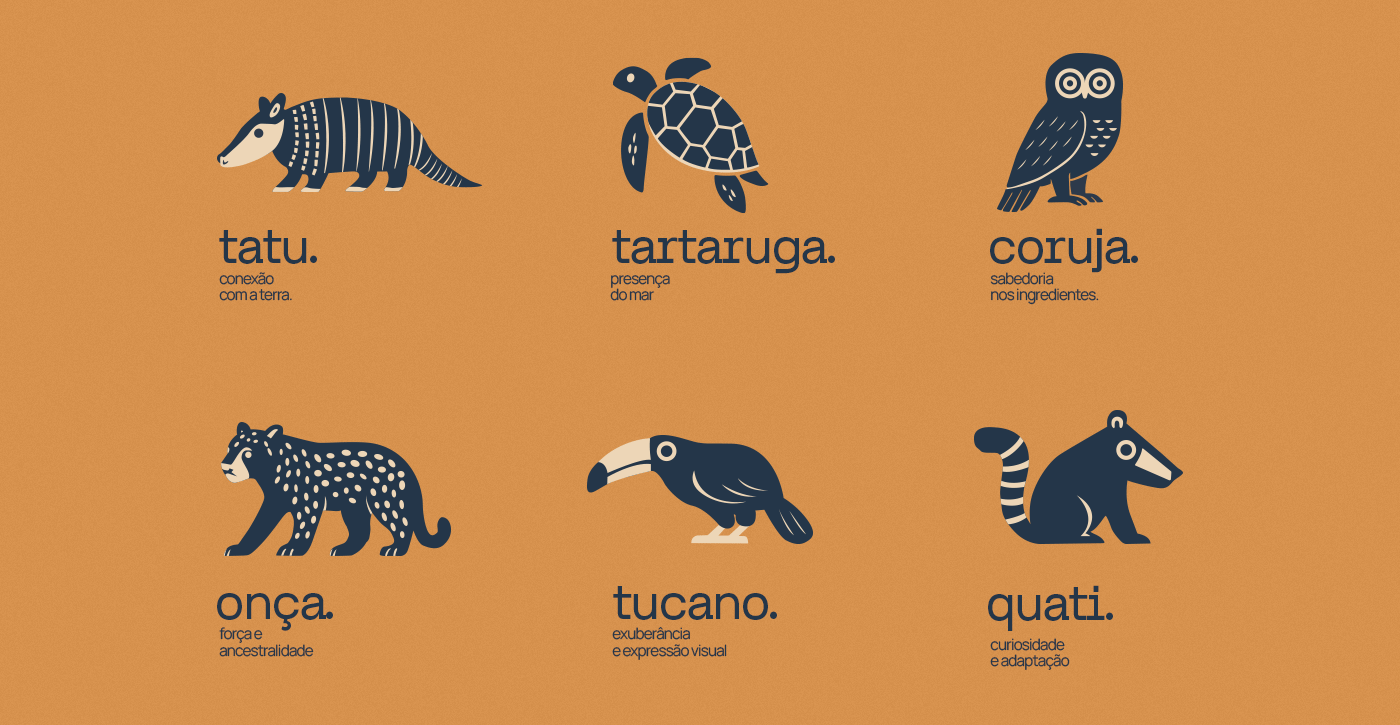 O desafio do projeto era construir uma identidade visual que fosse autêntica e elegante, sem recorrer a clichês folclóricos. Era necessário equilibrar a riqueza cultural brasileira com uma estética moderna, que conversasse tanto com o público local quanto com turistas que valorizam experiências gastronômicas com alma e curadoria.